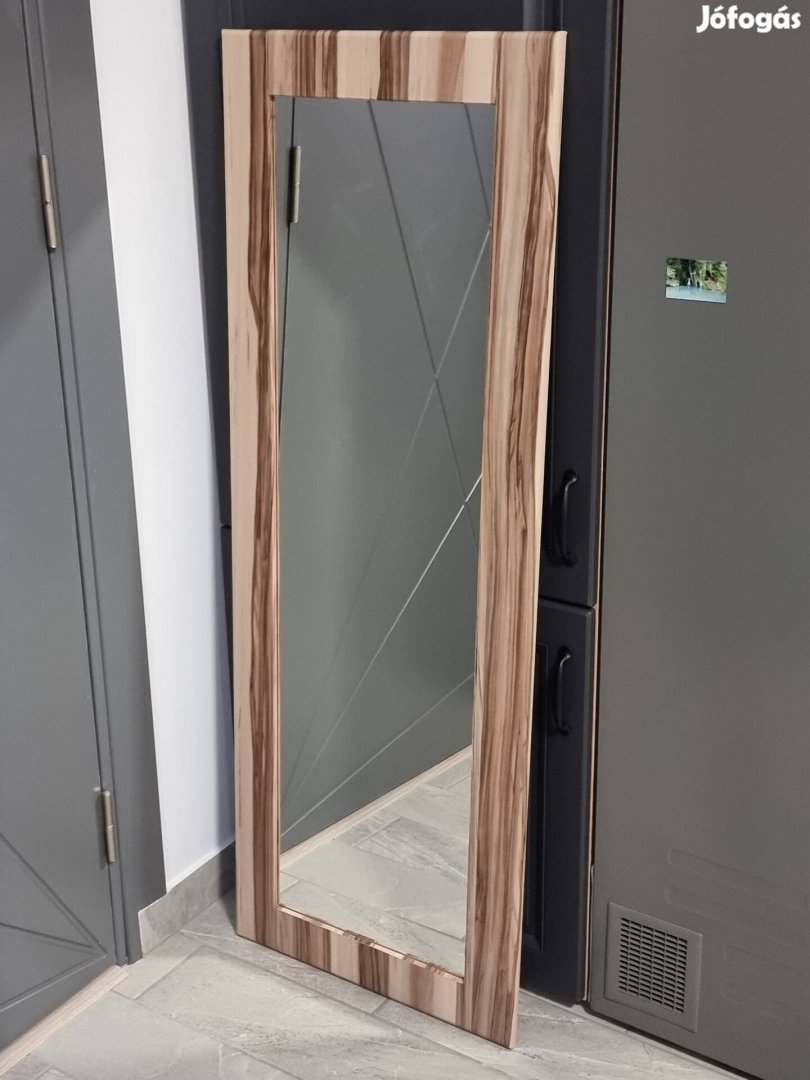Eladó egy 128x47 cm méretű, falra akasztható tükör. Eredetileg szekrényajtó volt, az anyaga fenyőfa, arra van a dió színű fólia ráragasztva. Személyesen átvehető Kiskunlacházán, vagy Csepelen.