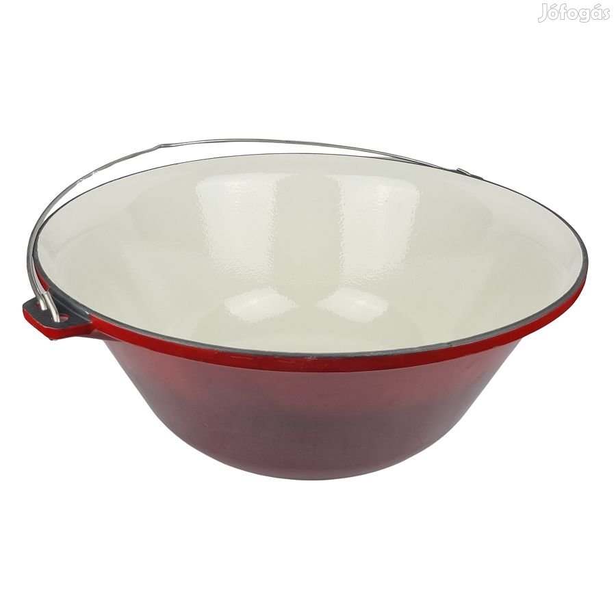 Nagy piros zománcozott öntöttvas bogrács 30 literes, 54 cm átmérő, 24 cm magas.