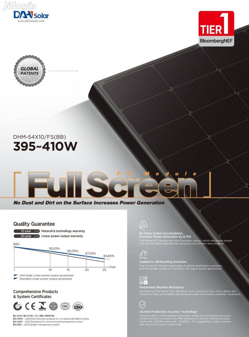 Eladó összesen 17 darab Új Dah Solar 405W-os napelem panel.