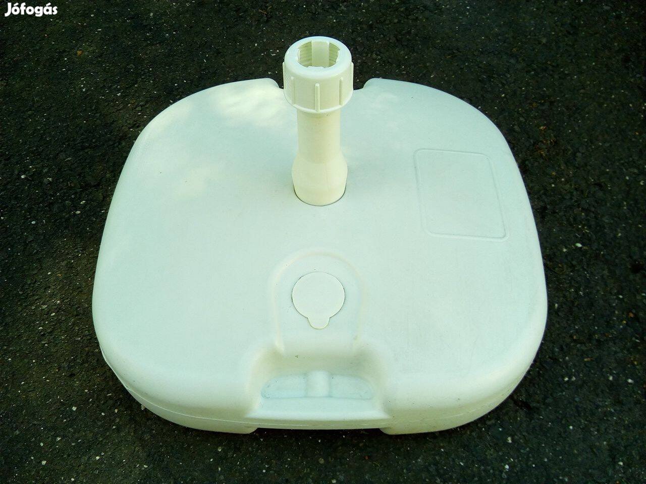 Eladó 20 literes űrtartalmú napernyőtalp, mely vízzel, illetve homokkal tölthető.