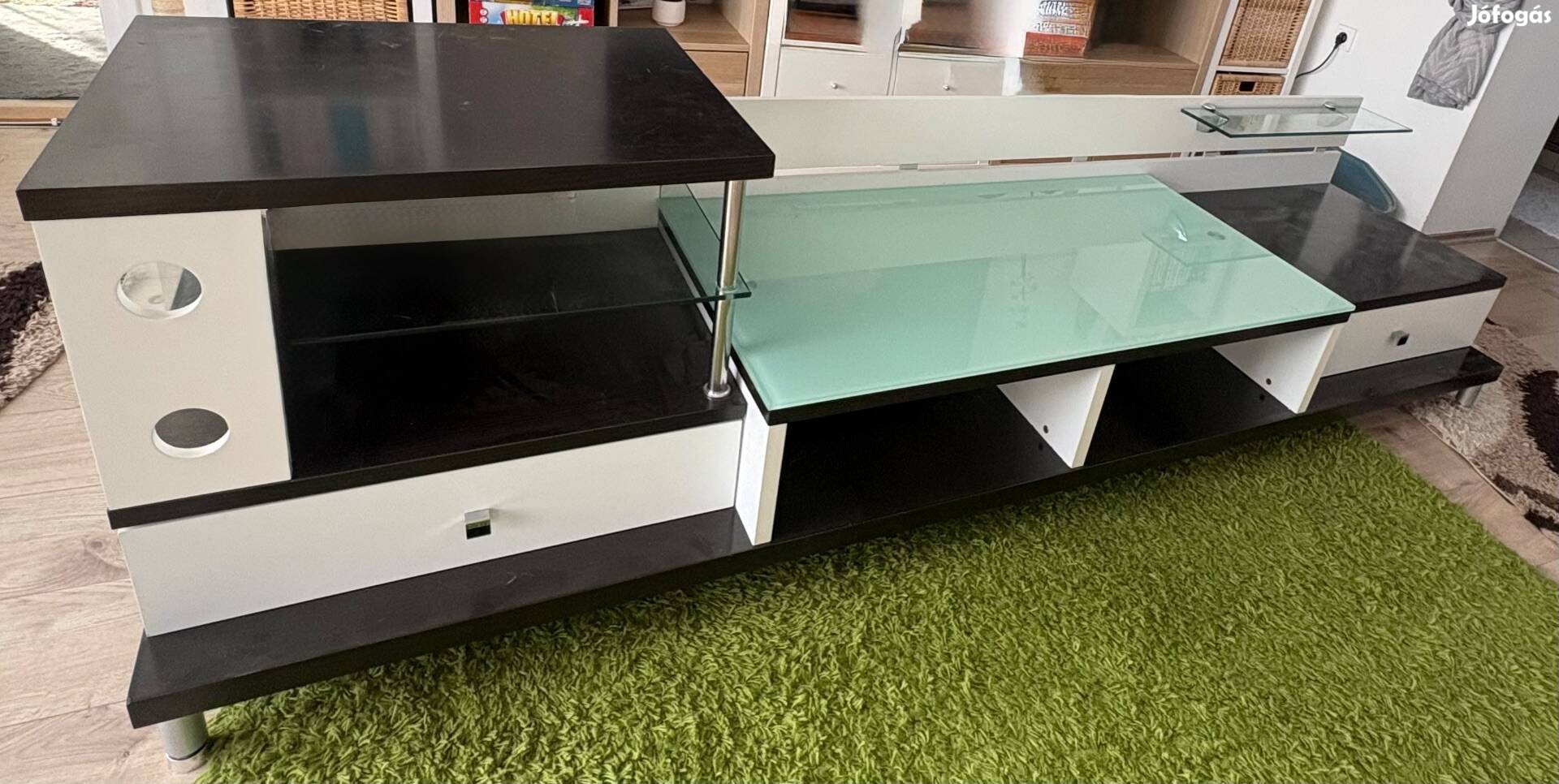 Jó állapotú nappali bútorom eladóvá vált. Néhány enyhe karcolás látható a felületen, de csak erős fényben lehet észrevenni, illetve az egyik végén az élzáró egy darabja hiányzik (ezeket fotóztam).
