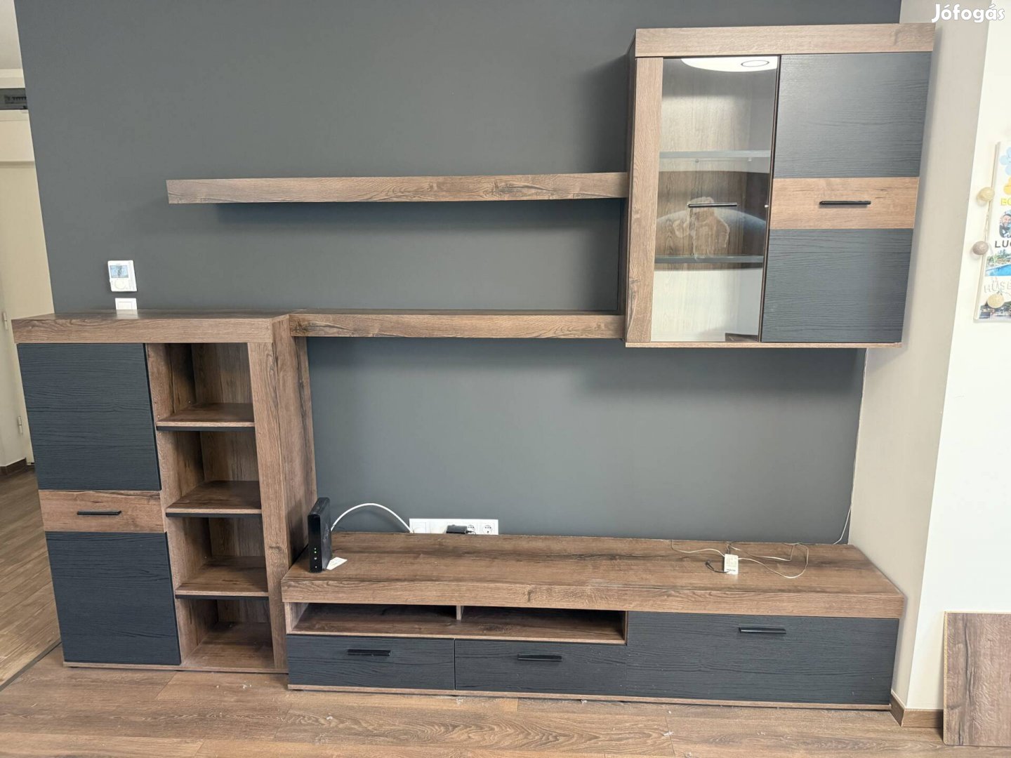 Használt, de megkímélt állapotú nappali szekrénysor eladó. Masszív, praktikus kialakítású, több tárolóhellyel (polcok, szekrények), így ideális nappaliba vagy akár dolgozószobába is.