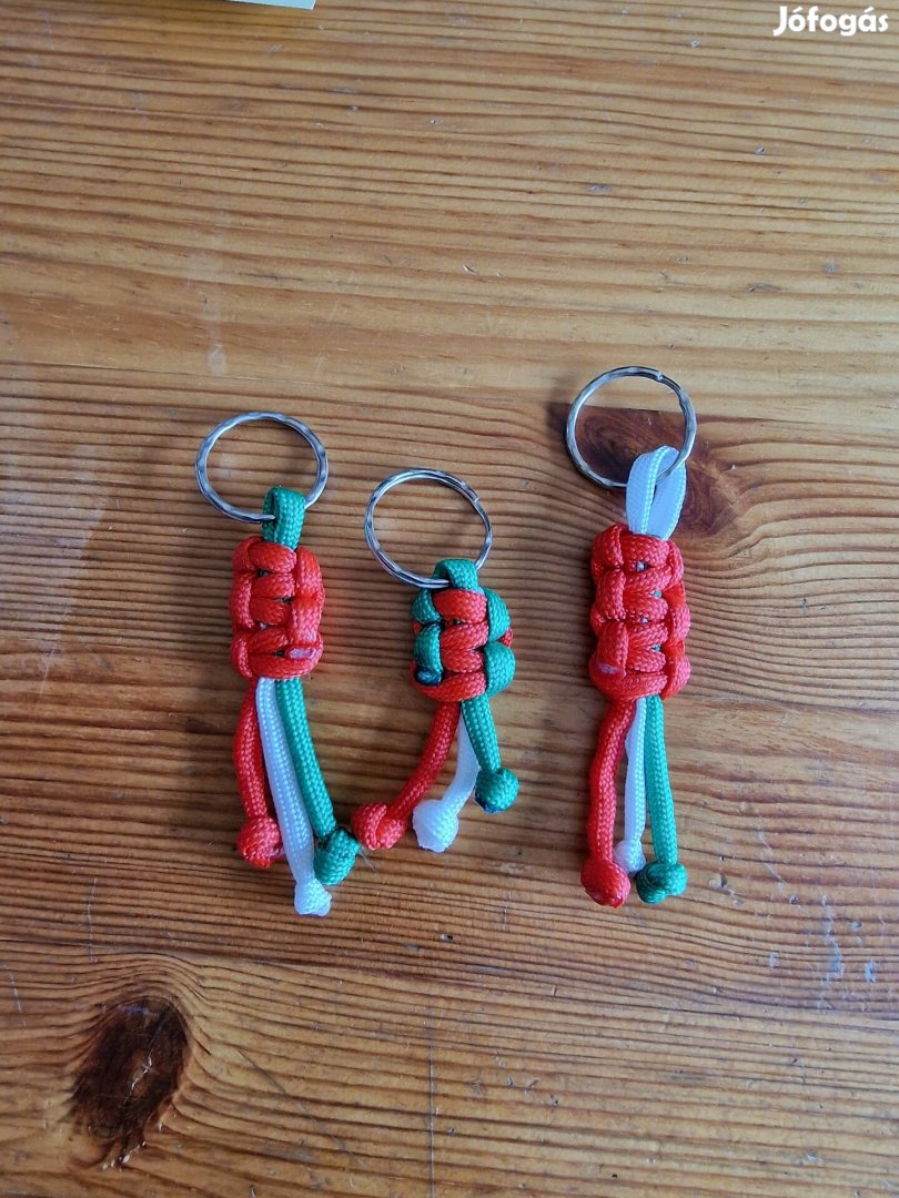 Nemzeti színű kulcstartó és táskadíszek.