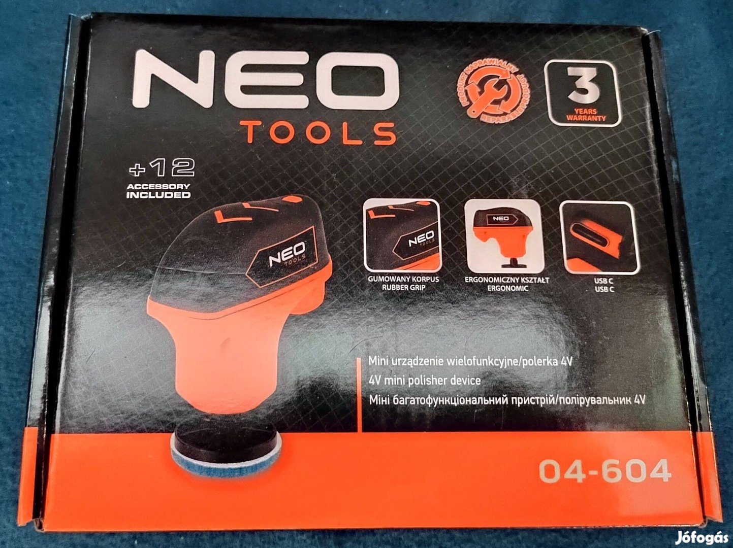 Kézreálló kialakításának és kis méreteinek köszönhetően tökéletesen elfér a kézben. Jellemzője a 4 V-os feszültség és a 2000 mAh kapacitású akkumulátor. A töltés USB C csatlakozón keresztül történik - a kábel (töltő nélkül) a készlet része. A NEO Tools multifunkciós szerszám üzemideje akár 45 perc, üresjárati fordulatszáma pedig akár 1800 perc-1. Ez a szerszám is számos tartozékkal rendelkezik. A készlet tartalmaz egy 5 cm átmérőjű kefét, egy tépőzáras talpat, egy kaparót pl. a jég eltávolítására az üvegről, 2 darab nagy és közepes keménységű talpat, egy polírozó szivacsot, valamint 6 darab csiszolópapírt - minden szemcseméretből 2 darabot: A NEO Tools multifunkcionális és tartós eszköze gumírozott fogantyújával és töltésjelzőjével sikeresen használható polírozásra, simításra, csiszolásra, a felületek felfrissítésére vagy a jég eltávolítására az üvegről. Ajánlott dekoratőröknek, barkácsolóknak vagy autórajongóknak.