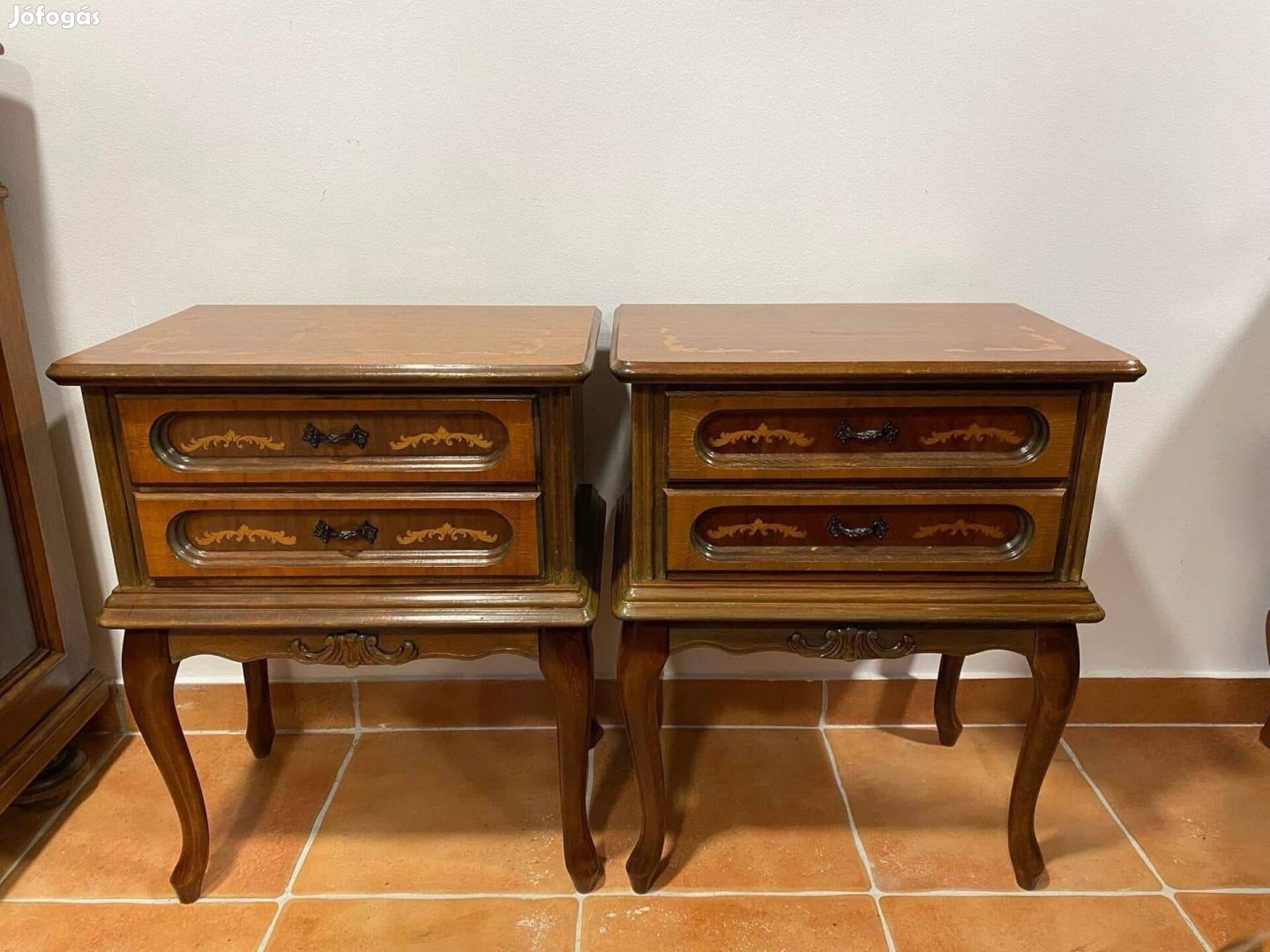 Neobarokk intarziás 2 fiókos éjjeliszekrény 2 db