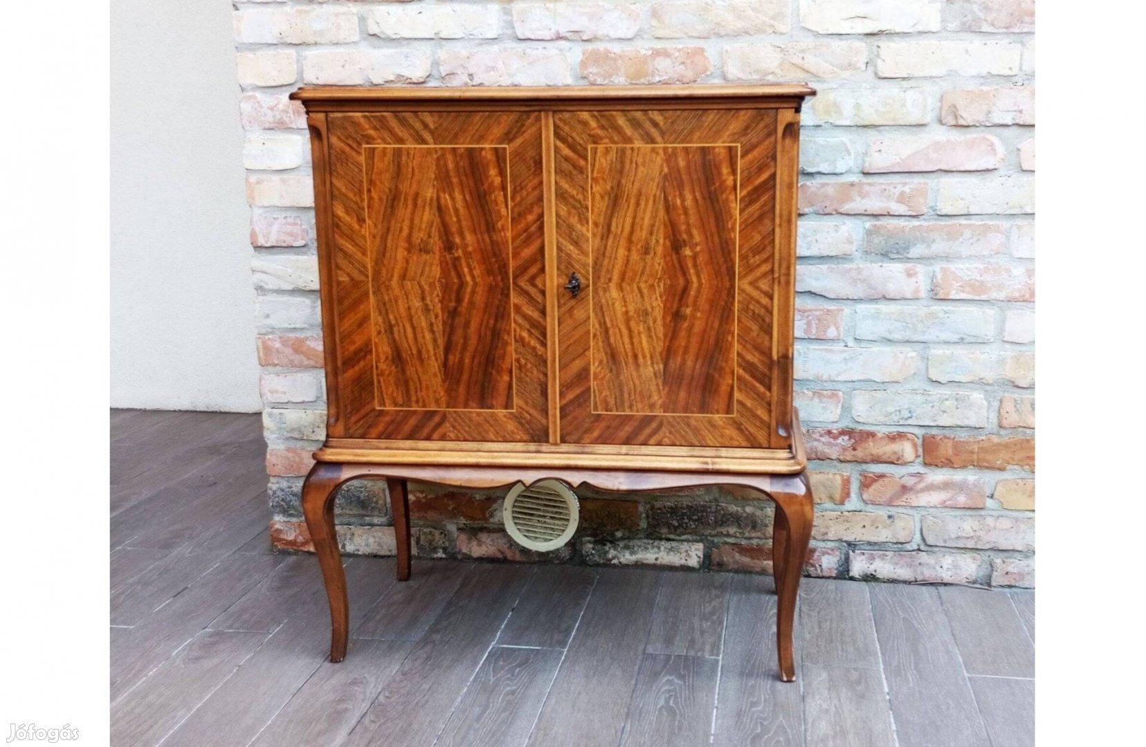 Politúrozott, tömörfa média szekrény, 270 fokban nyíló ajtókkal, megkímélt állapotban eladó.
