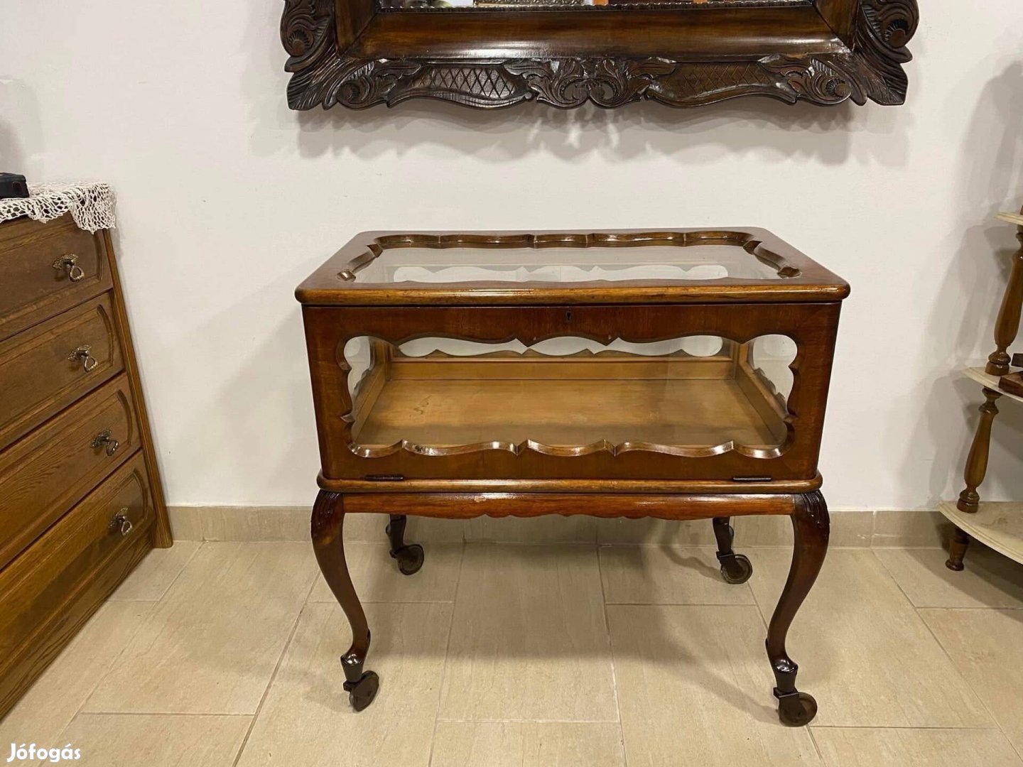 Szép állapotú zsúrkocsi oldalra lehajtható ajtóval eladó. Méretei: magassága 74 cm, 74 x 45 cm.