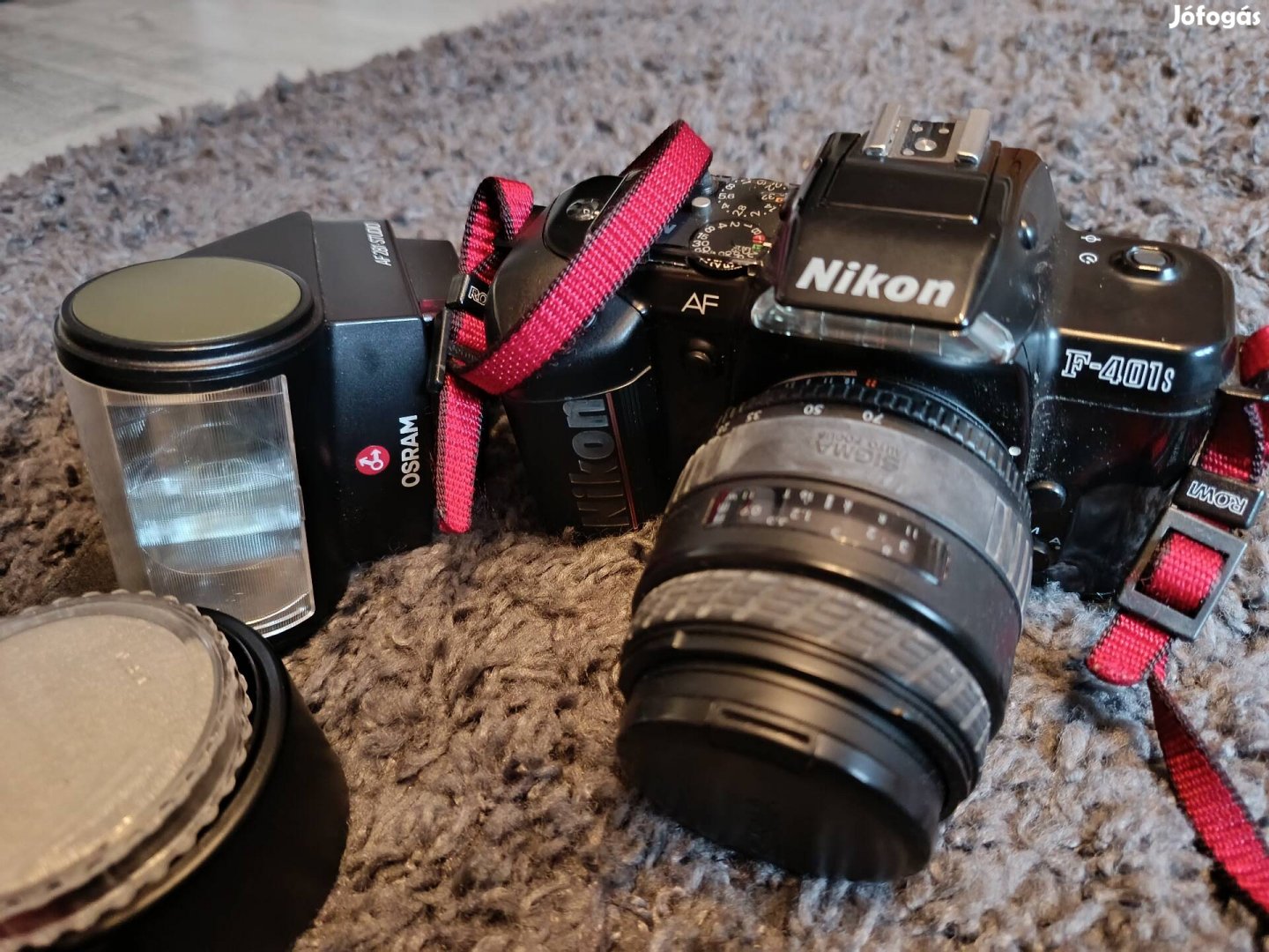 A 80-as évekből való fényképezőgép teljes szettben .Vaku+ objektív+ fényképezőgép