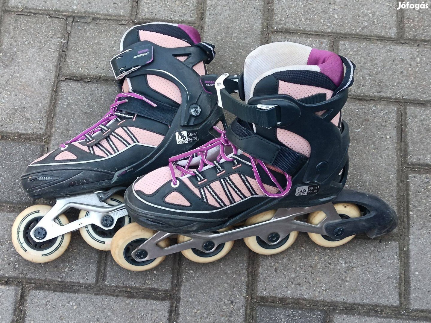 Alig használt női görkorcsolya eladó. Mérete: 38-41. Színei: rózsaszín, lila és fekete. Vecsésen megtekinthető, szállítást nem tudunk vállalni.