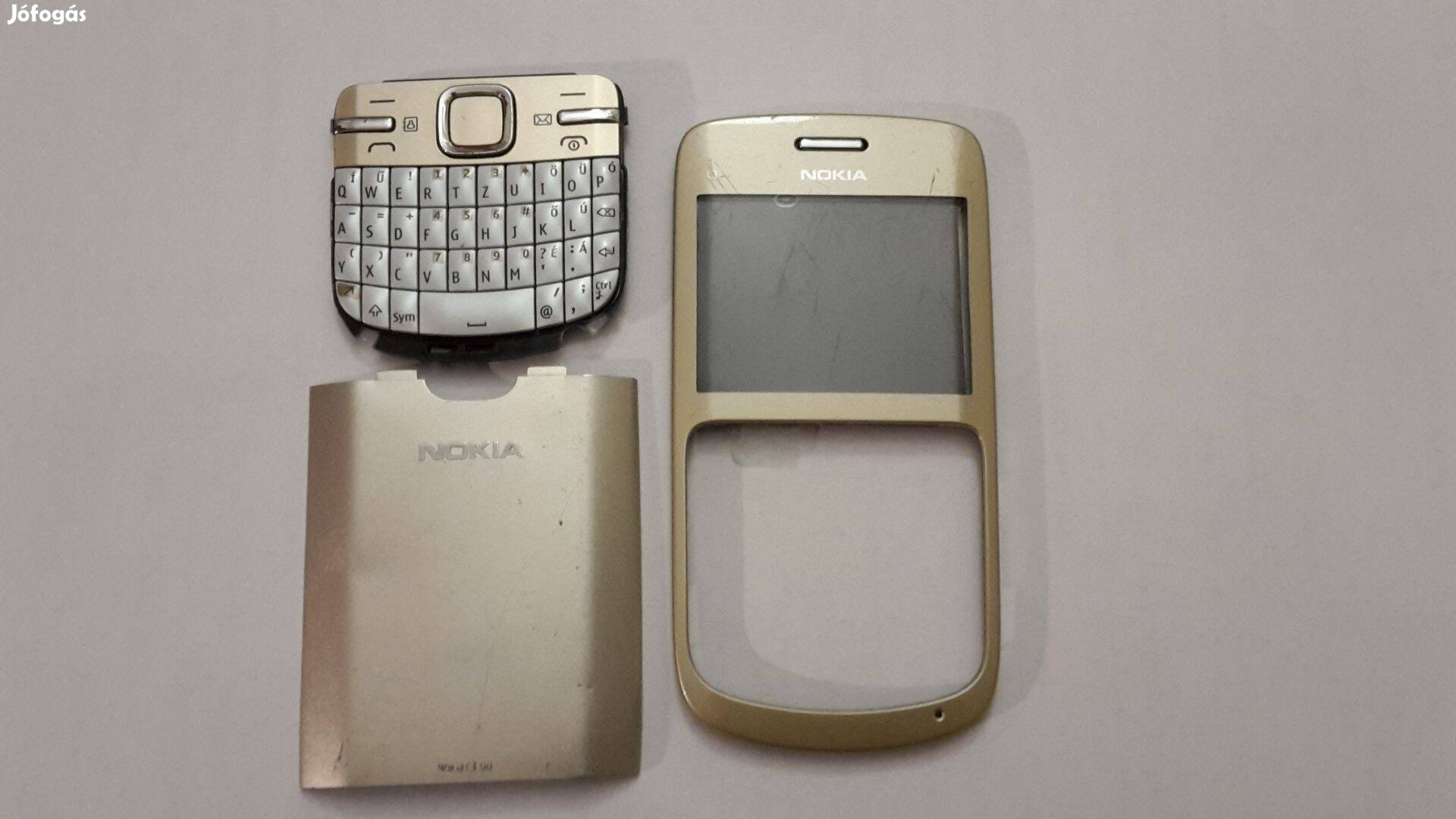 Eladók a képeken látható, arany színű Nokia C3-00 mobiltelefonhoz tartozó alkatrészek.