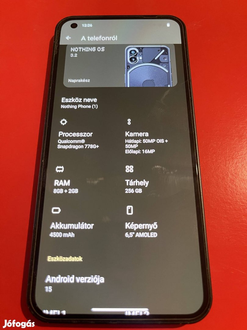 Eladó Nothing Phone 1 256 gb tárhellyel rendelkező telefon
