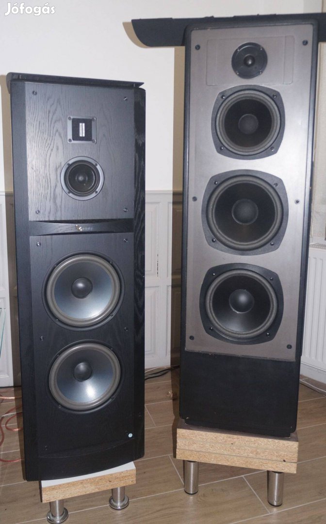 Ez a márka egy óriási verziója, Igazi nagy vas, mindkét oldalon van egy plusz mélysugárzó. 350/500Wattos teljesítmény mindenre elég, de igazából egy 20 wattos teljesítménnyel is meghallod a legapróbb hangokat is. Iszonyatosan széles, mély tereket varázsol és szólaltat meg. Korához képest nagyon jó állapotban van, külsőleg és a beltartalommal, műszakilag is rendben van. Kizárólag személyes átvétel lehetséges csak mert súlya 64 kg körül van, darabonként. Komoly ajánlatot várok, elsősorban hozzám hasonló zenebolondoknak.