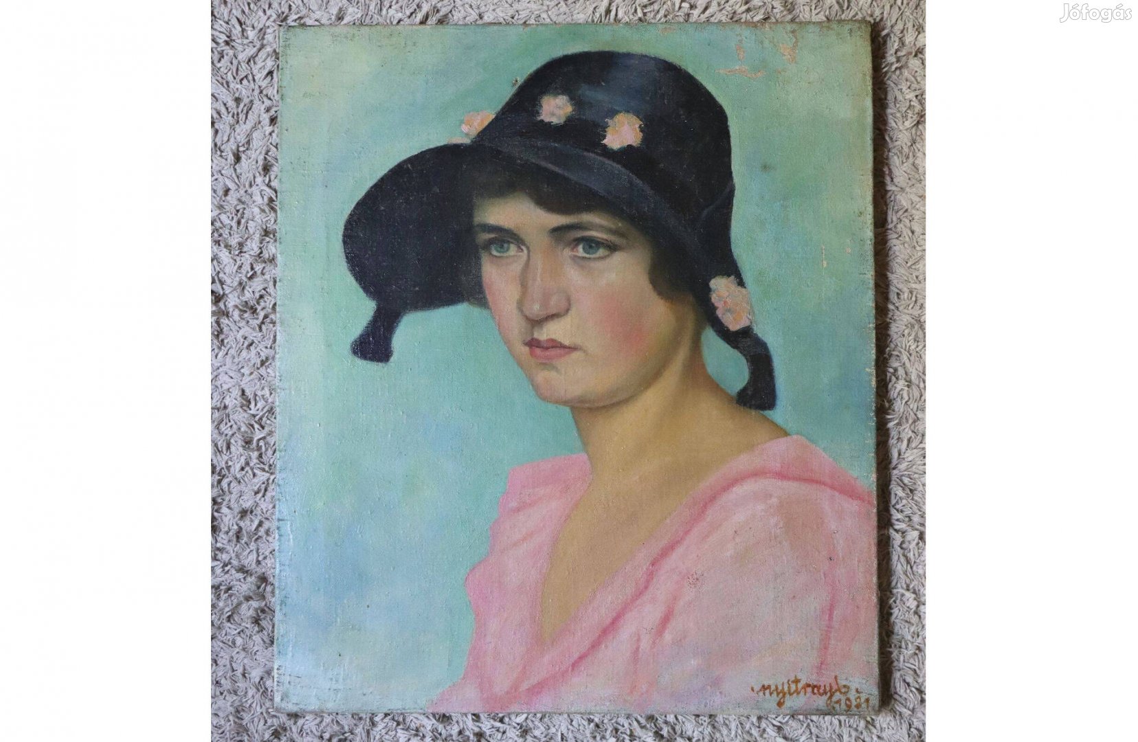 Olaj-vászon portré Nyitray szignóval, képeken látható állapotban.