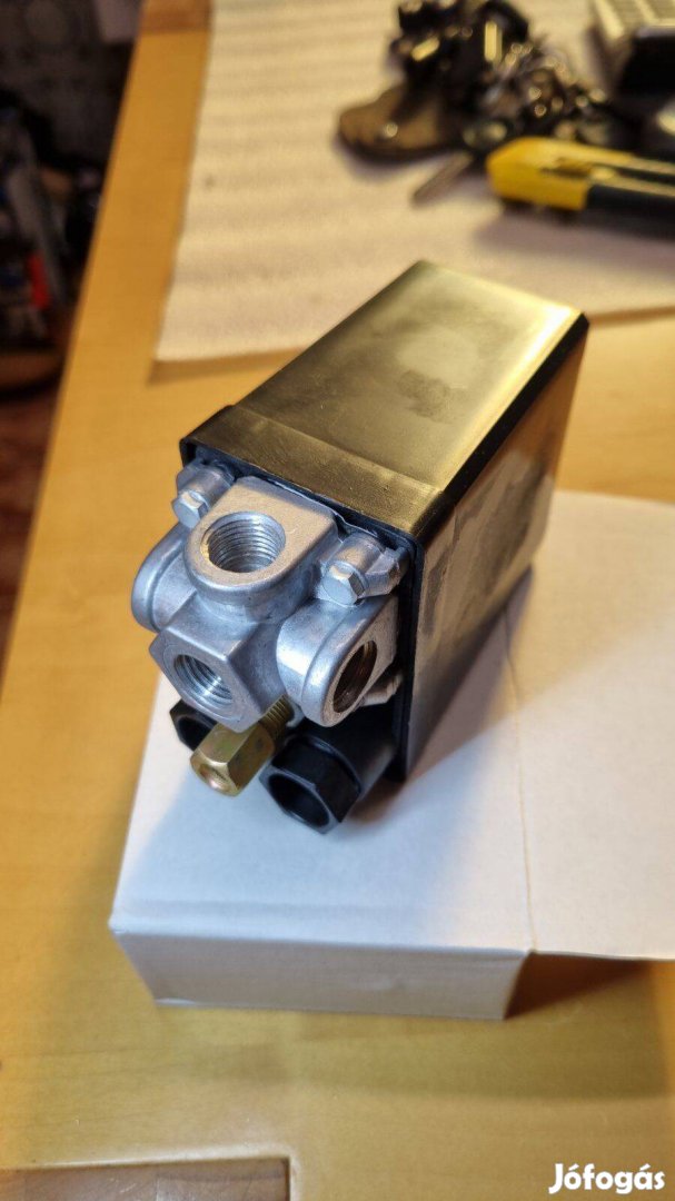 Kompresszorhoz nyomáskapcsoló, 4 kiállással, mely a kompresszor működését automatikusan vezérli.