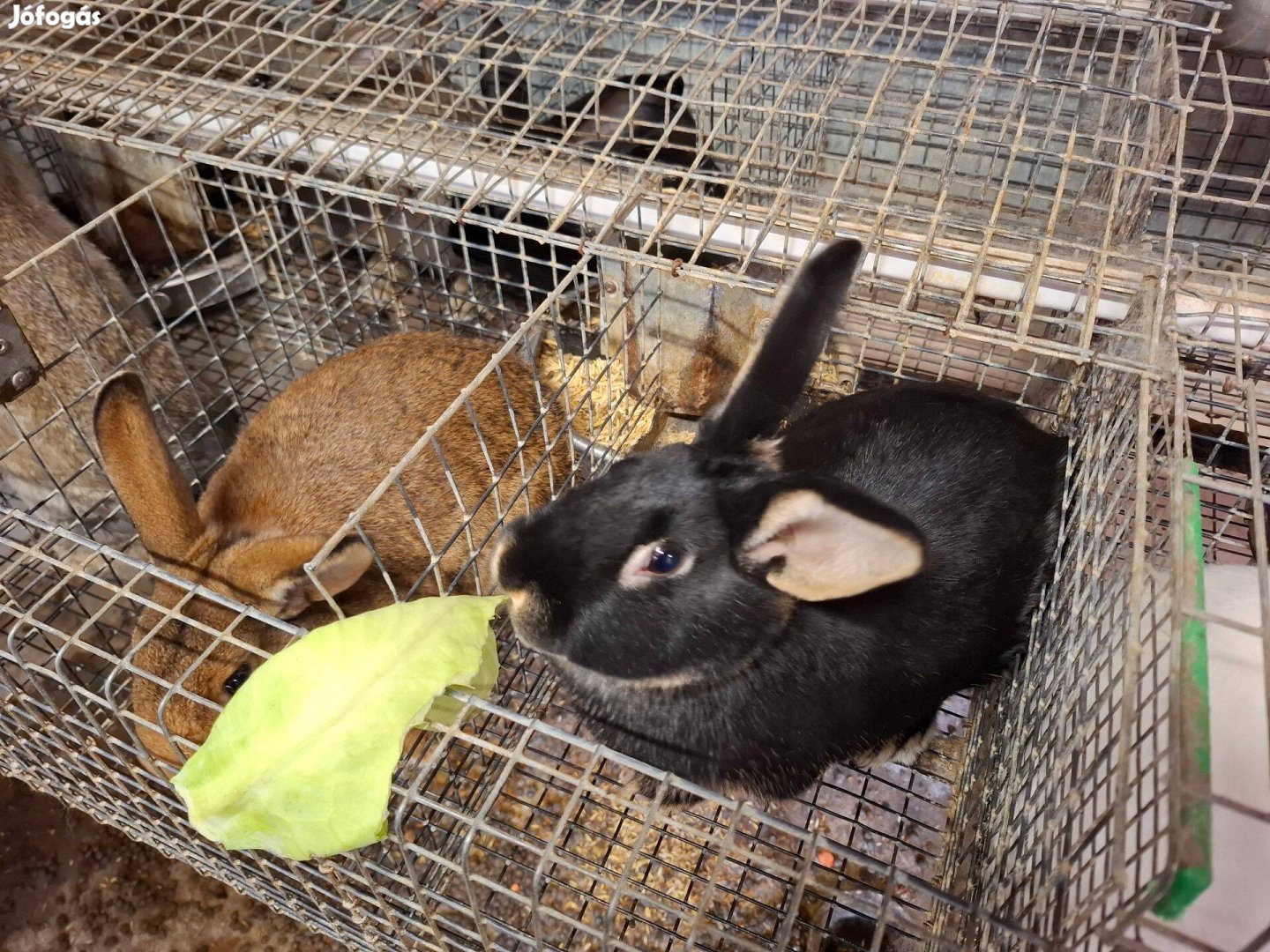A cser-fekete színű nyúl 2025. szeptemberi születésű. A többi nyúl a képeken 2025. decemberi születésű. 2000 forint/kg