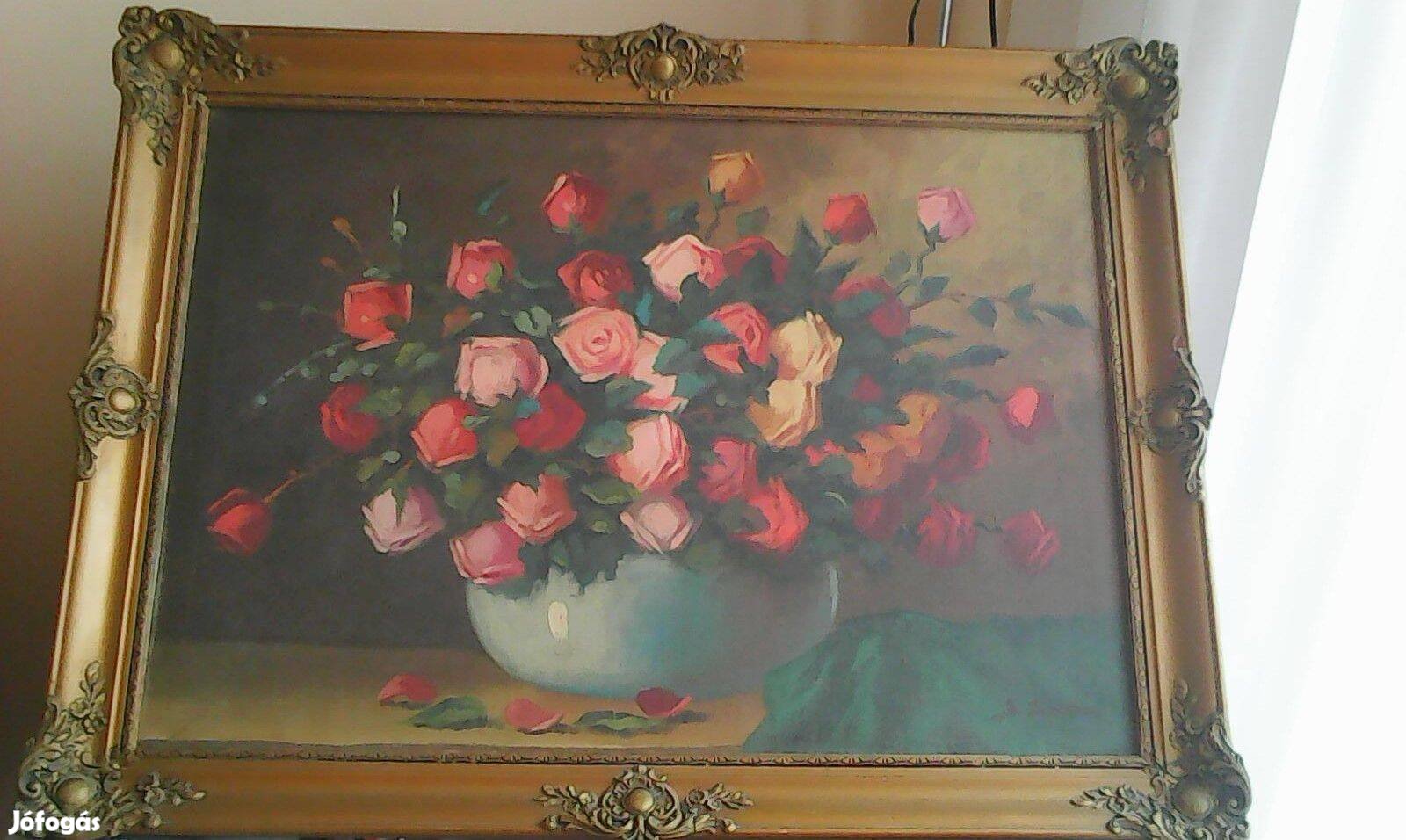 Eladó, a képen látható virágcsendélet, olaj-vászon.