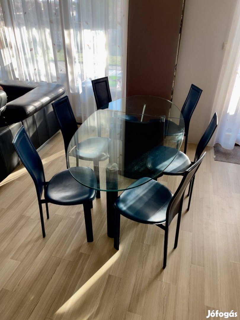Eladó a képeken látható olasz design üveg étkezőasztal Cattelan Italia székekkel. A bútor kiváló használt állapotban van.