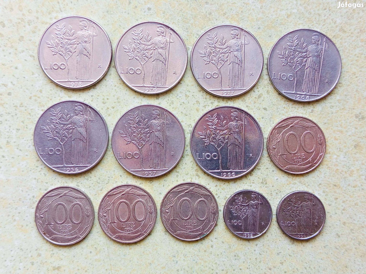 Olaszország 13 db Különböző Érme 100 Líra 1956-1998