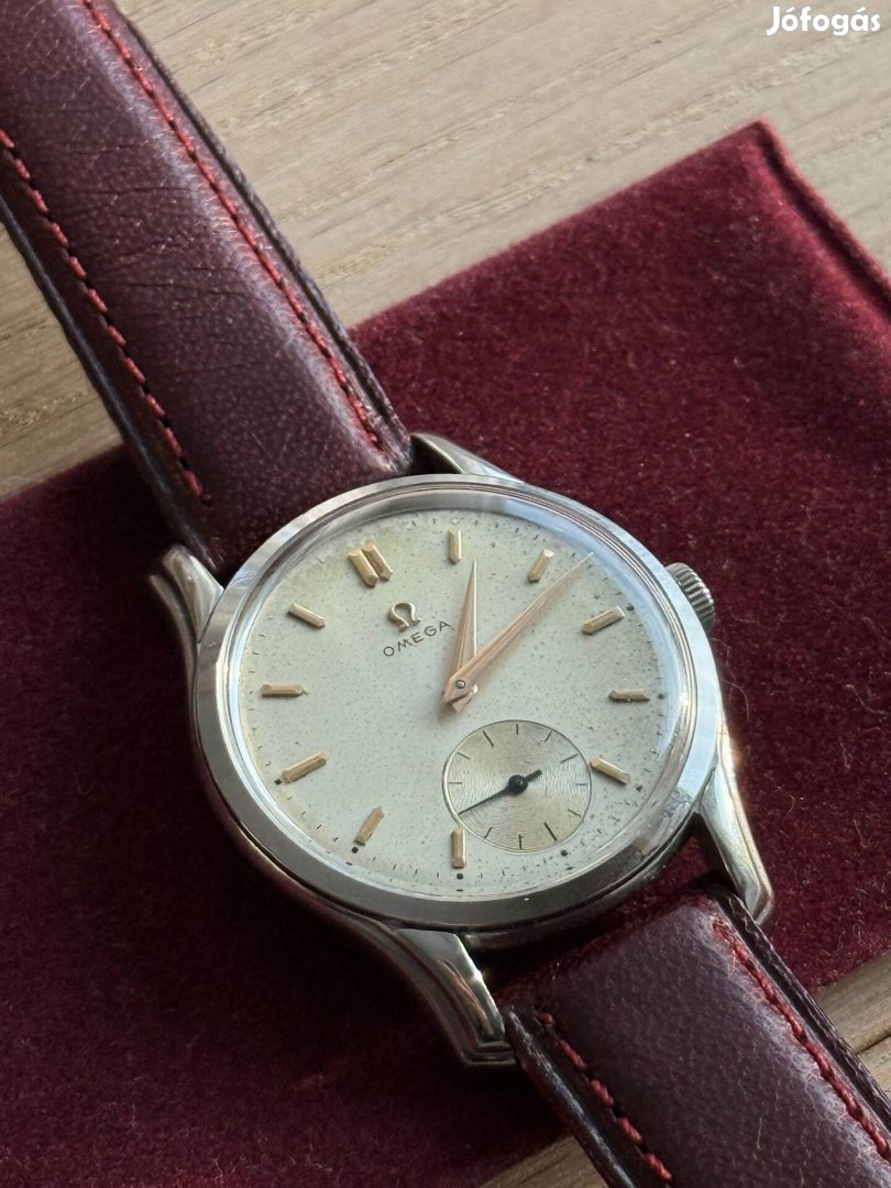 Eladó egy eredeti Omega Jumbo karóra az 1950-es évekből, amely a korszakhoz képest ritka, nagy méretű tokjával (35,6 mm, korona nélkül) különösen keresett darab.