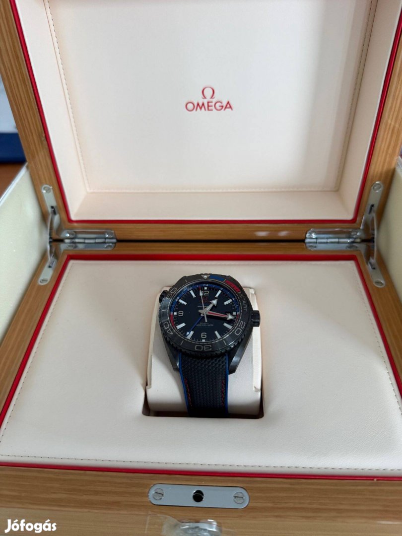 Omega Seamaster Planet Ocean GMT megkímélt újszerű állapotban. 45,5 mm- es tokméret, kerámia tok CO-Axial8906 szerkezet, 60 óra járástartalék, 2015-ös vásárlás New Zeland Emirates Team órája. ref.szám:O21592462201004