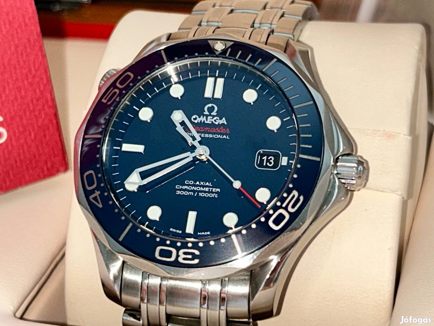 Eladó egy Omega Seamaster Professional 300M automata karóra, klasszikus kék számlappal és lünettával, acél szíjon. Az óra megjelenése időtálló, sportos és elegáns egyszerre tökéletes mindennapi viseletnek vagy gyűjteménybe. 2016-os évjárat, 2023-ban Hantosnál szervizelt.