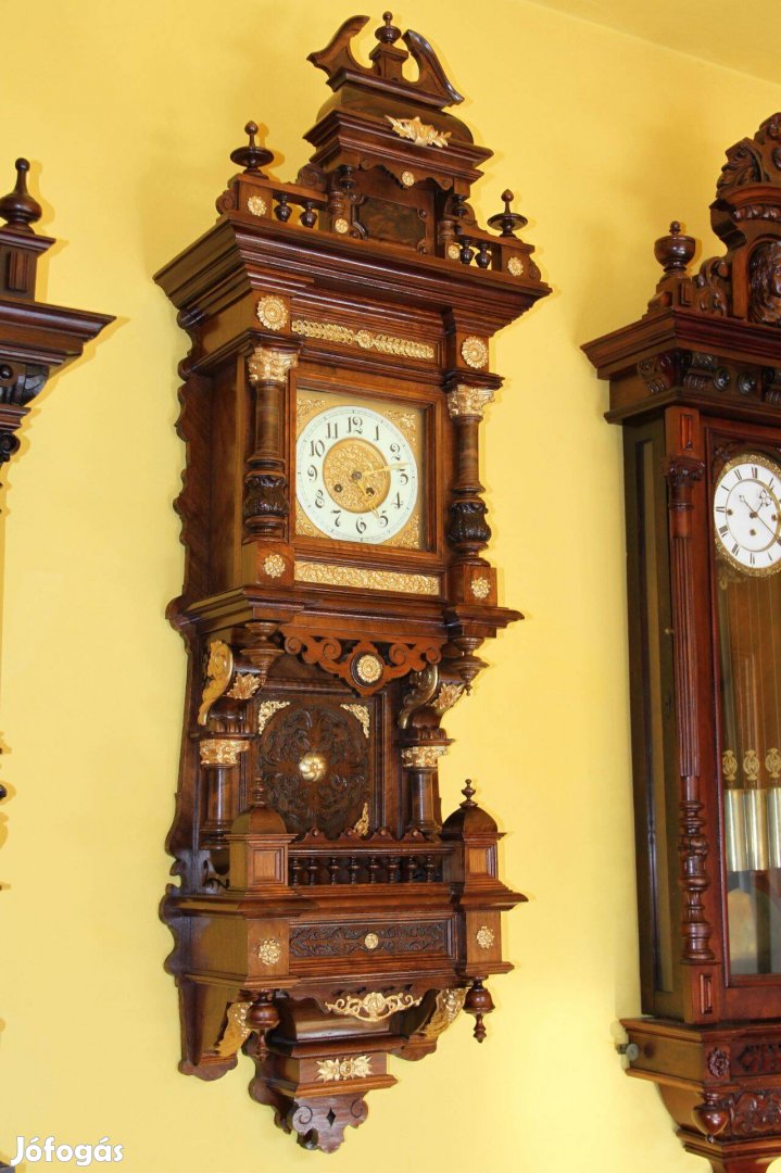 Ónémet kétsúlyos, dúsan faragott hatalmas monumentális falióra, minden eredeti rajta