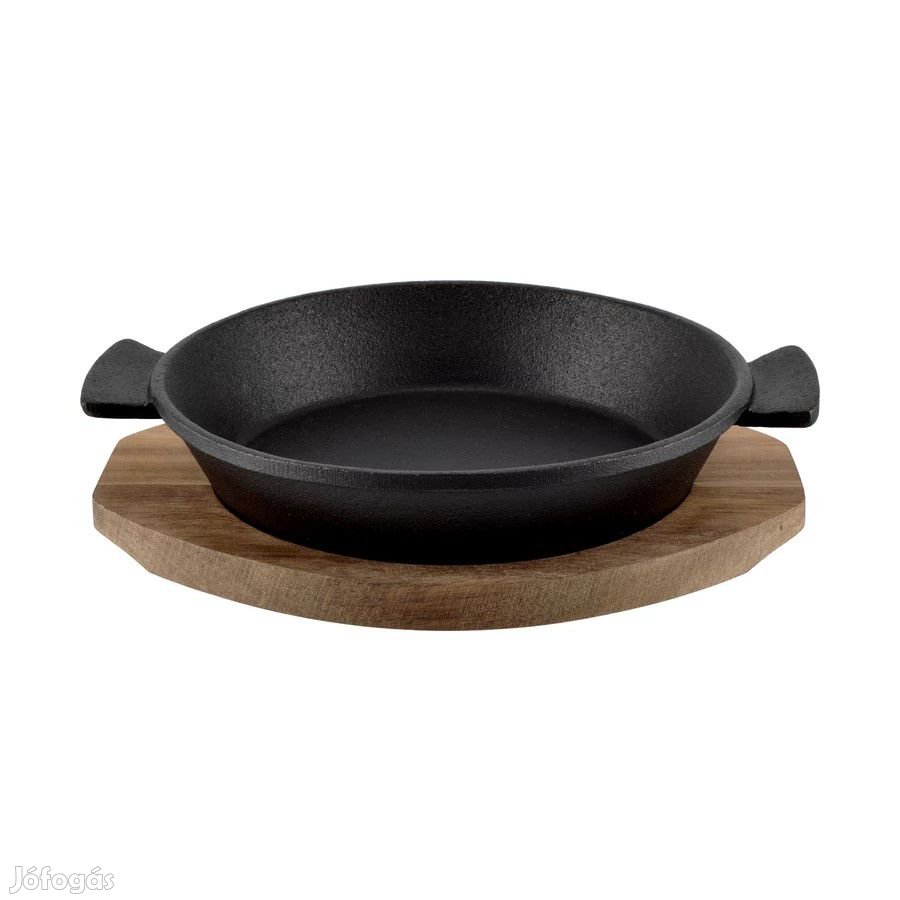 Öntöttvas kerek sütőtál fa alátéttel 19cm