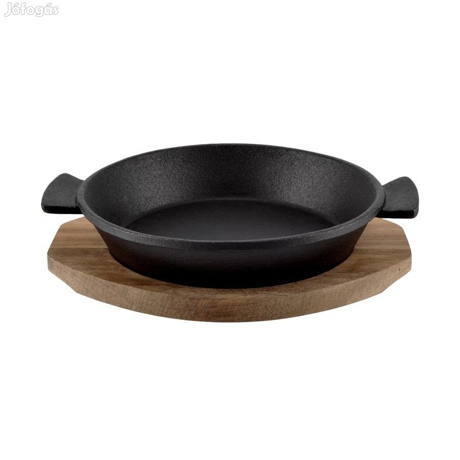Öntöttvas kerek sütőtál fa alátéttel 19cm