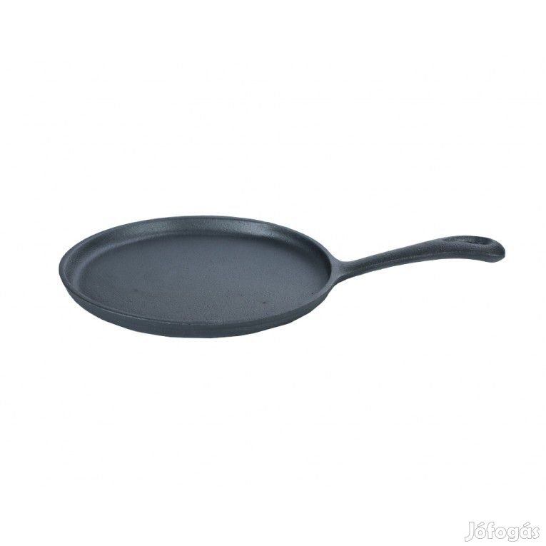 Öntöttvas serpenyő 20 cm, 1 cm magas, teljes hossza fogantyúval együtt 32 cm