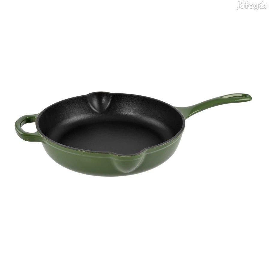 Zománcozott öntöttvas serpenyő 27cm -es zöld színű, két csőrrel