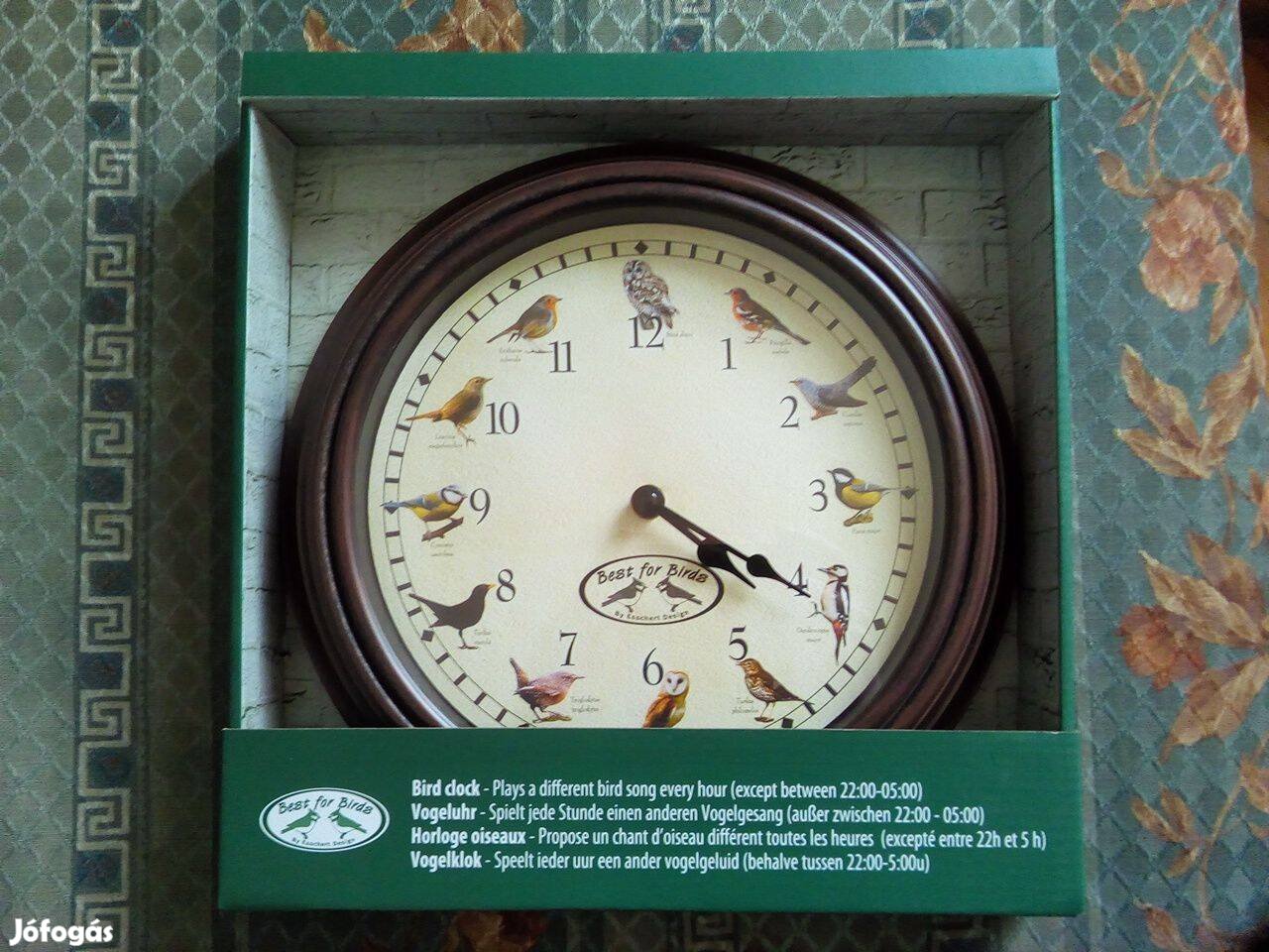 Különleges, madárhangokon megszólaló óra, mely minden órában más madár hangján jelzi az óra egészet. Helyezd a kertedbe vagy a lakásodba és élvezd minden órába a változatos madár hangokat. 12 madárhangon szólal meg az óra: erdei pinty, kakukk, széncinege, nagy fakopáncs, énekes rigó, gyöngybagoly, ökörszem, fekete rigó, kék cinege, fülemüle, vörösbegy és macskabagoly. Az óra 3 ceruzaelemmel működik, egy elem az óraműt, kettő pedig a hangokat működteti, így ha nem szeretnéd hogy szóljon az óra, akkor nem kell elemet rakni a madárhangokért felelős tartóba. Az elemek nem tartozékai a terméknek. Idő beállítása: Állítsd az órát a megfelelő időhöz. A madárhangok, ha be van kapcsolva, 22 és 5 óra között nem szólalnak meg. Nyári időszámítás: óraátállítás során mindig előre tekerd az órákat (nyáriról téli időszámítás során előre állítunk 23 órát téliről nyári időszámítás során előre állítunk 1 órát), hiszen ha visszafele tekered a mutatókat, azzal megzavarhatod a madárhangokat. Madárhangok beállítása: a madárhangokat a hangszóró melletti kerek gombbal állíthatod be. Állítsd az órát 5 perccel egész óra elé, és addig nyomd a kerek gombot a hangszóró mellett, amíg a megfelelő hangot nem hallod az egész óra mutatójánál. (Ajánljuk a huhogó kakukk hangját kiindulási pontnak 2 óránál, a könnyű felismerés miatt.) Figyelj arra, hogy az óra 22 és 5 óra között nem ad ki hangot, így lehet, hogy kétszer kell végignyomni, hogy a megfelelő hangot be tud állítani.