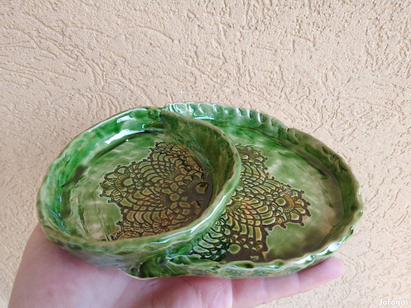 Kézzel formázott, csipkemintás, osztott kerámia kínáló.