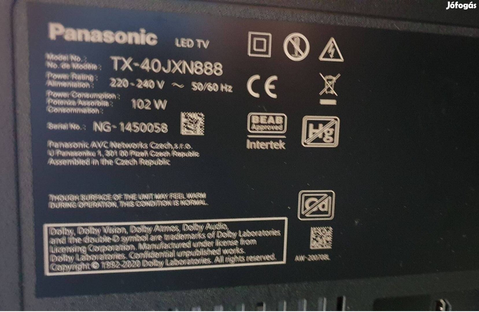 Panasonic TX-40Jxn888 LED LCD tv 4K UHD hibás törött alkatrésznek