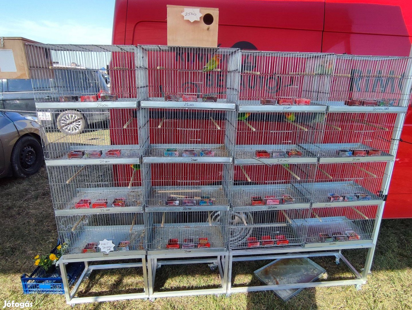 3 etető van egy kalitban és ahány ketrec van annyi eladó odú is van. (Vagy talán még több is..)