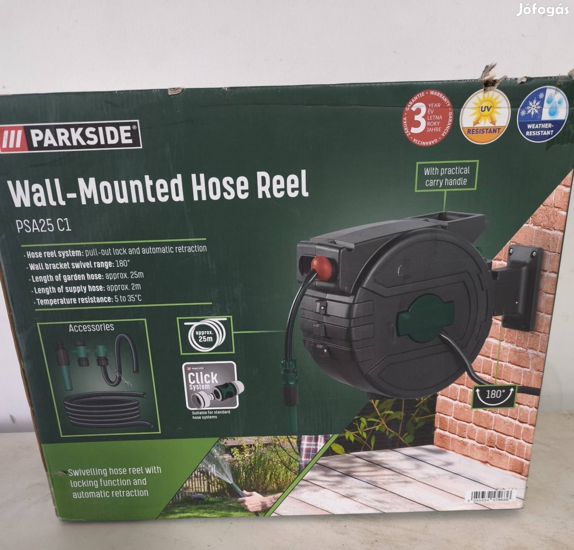 Eladó a képeken látható új Parkside fali tömlötartó. Minden infó a képeken látható. Futár megoldható. Érdeklődni privátban.