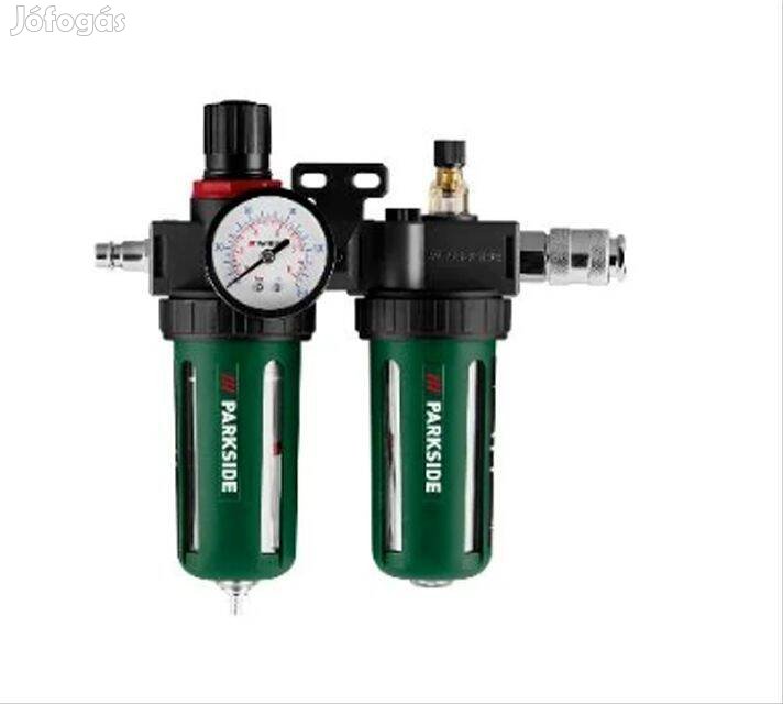 Parkside légszűrő + vízleválasztó (páraleválasztó) + olajozó egység pneumatikus gépekhez, kompresszorokhoz. Festés előtt szükséges a páraleválasztás és szűrés. Pneumatikus gépekhez szükséges az olajozás. Új termék, bontatlan dobozában. Több darab van belőle készleten.