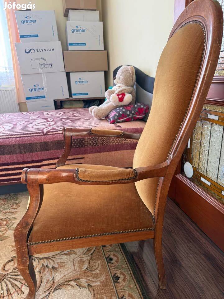 Eladó költözés miatt egy régi, de jó állapotú rugós, párnázott (bársony) karosszék.