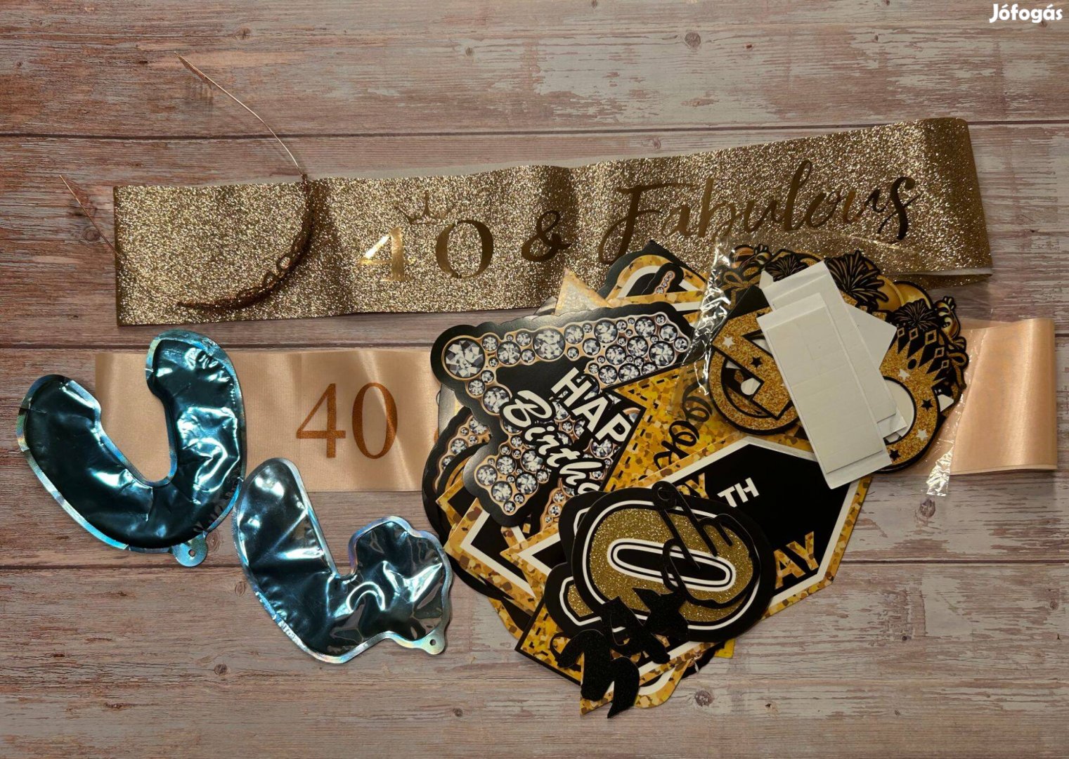 Kis méretű lufik, szalagok, papírszemüvegek, korona