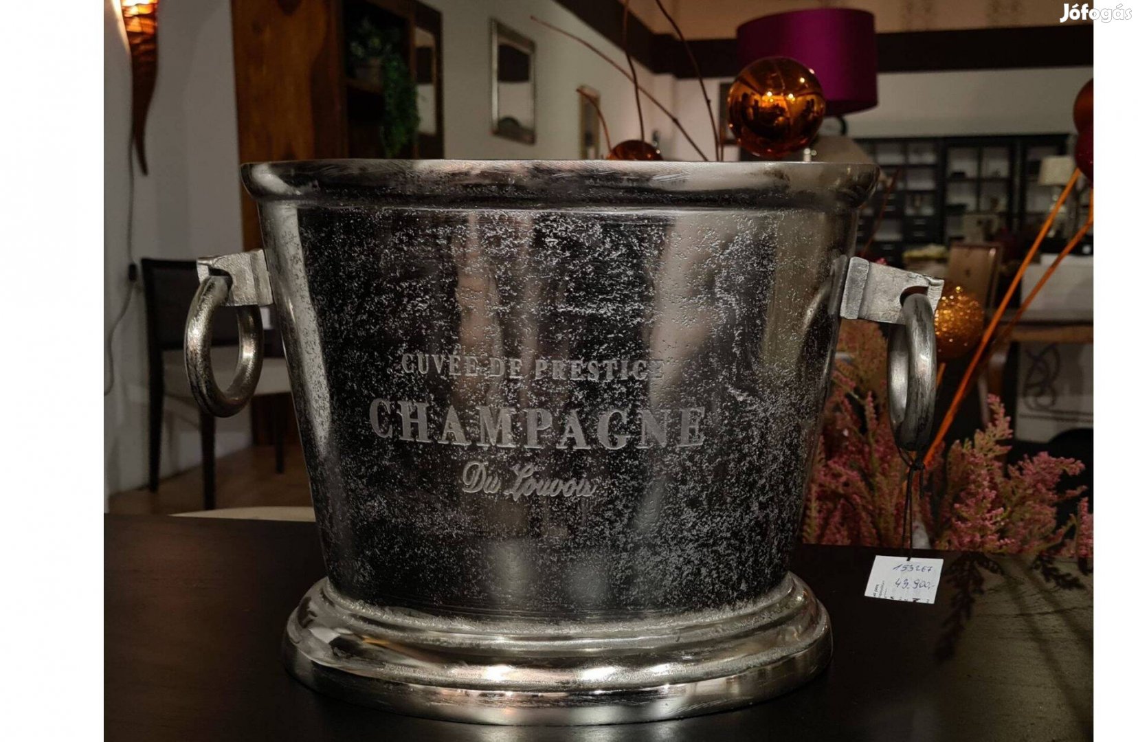 Patinás matt ezüst pezsgőhűtő , borhűtő , fémből,