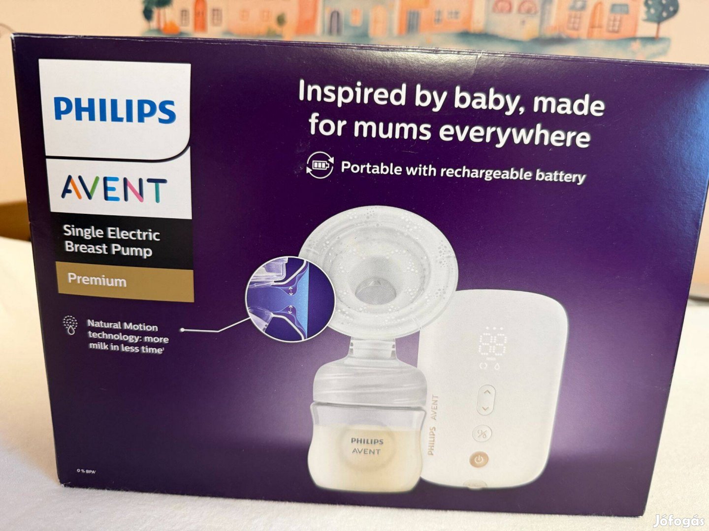 Philips Avent mellszívó, eredeti dobozban. Tartozékok: 125 ml-es cumisüveg natural response 1-es cumival, tölltőkábel és adapter, zárókupak.