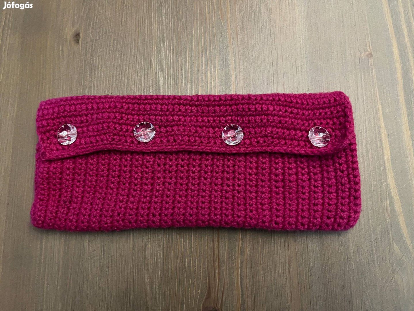 Eladó pink horgolt kis neszeszer, tolltartó vagy szemüvegtartó, kézműves termék
