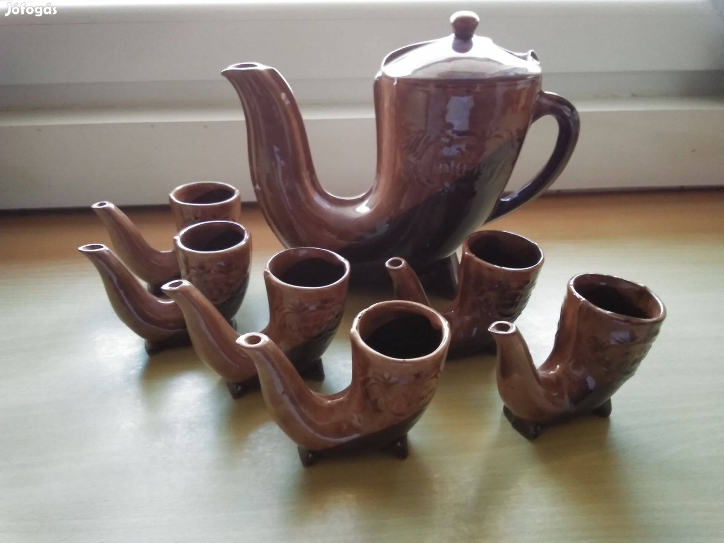 Eladó a képeken látható eredeti bolgár mázas pipa alakú pálinkás készlet. Hibátlan, sosem volt használva.