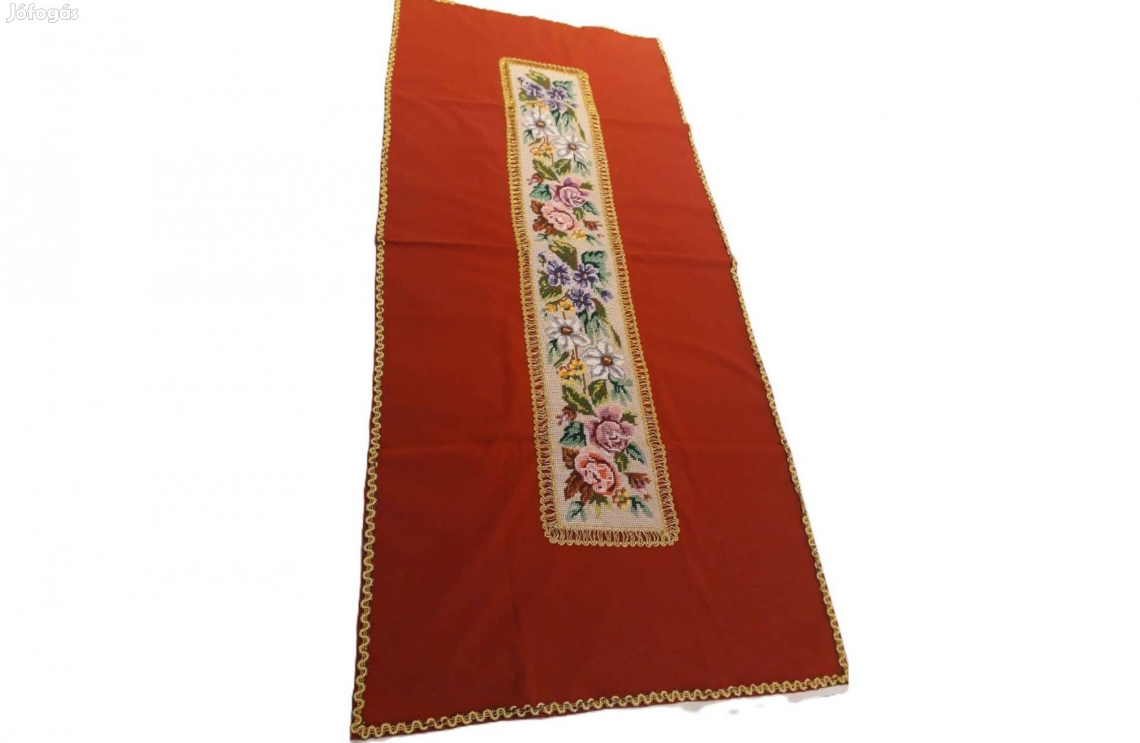 Piros alapon kézzel hímzett gobelin asztali futó nagy méretben