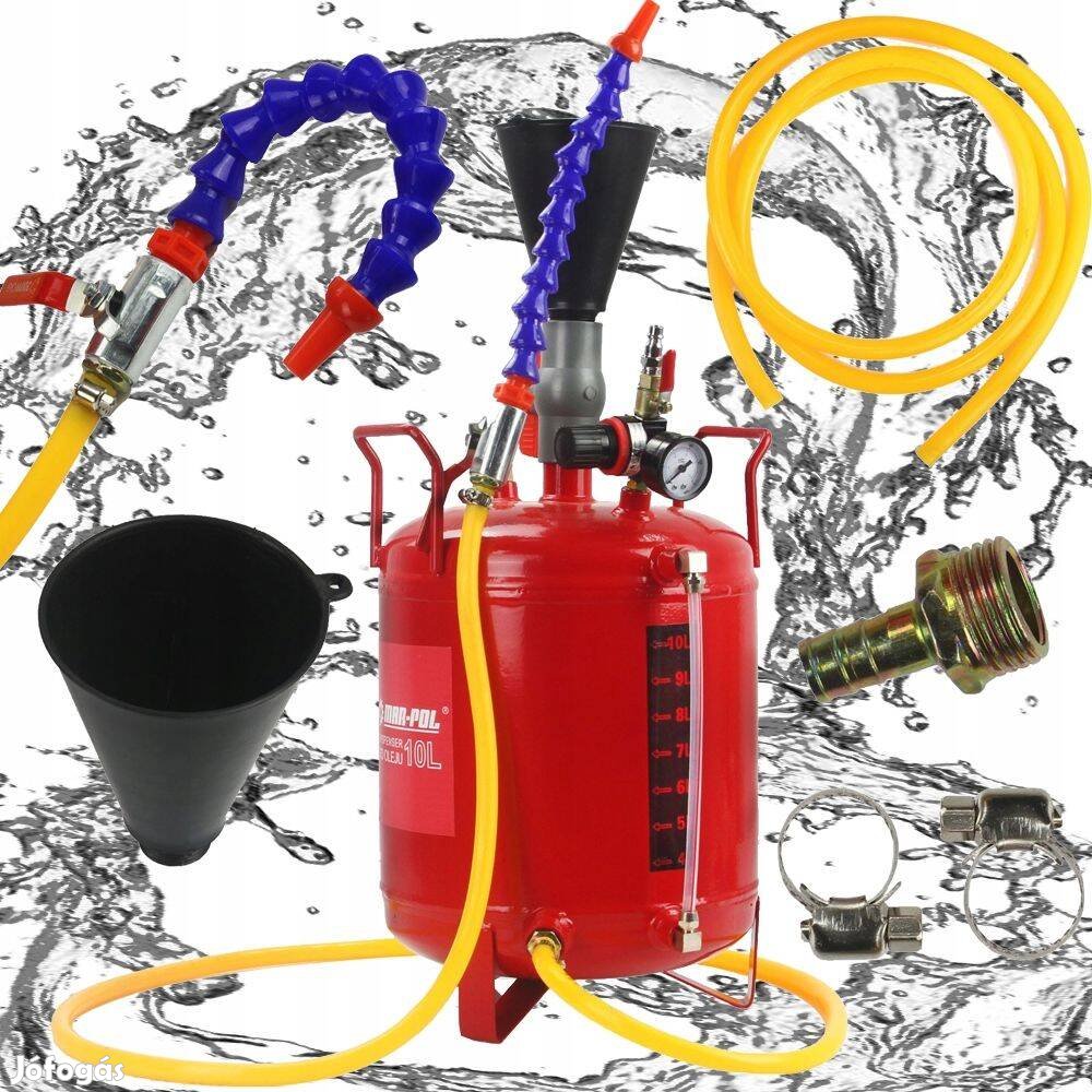 10literes pneumatikus olajbetöltő / olajadagoló autószerelők és műhelyek számára, amelyet motor-, sebességváltó és más kenőanyagok feltöltésére nyomás alatt terveztek. Ideális olyan helyzetekhez, amikor nehezen hozzáférhető pontokra kell olajat juttatni, vagy nagyobb mennyiséget kell egyszerre tölteni.