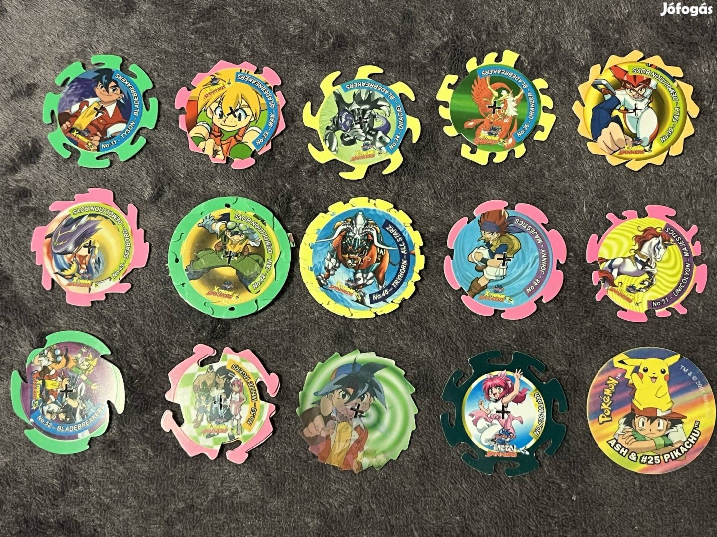 Eladó a képen látható vegyes Beyblade és Pokémon Tazo csomag !