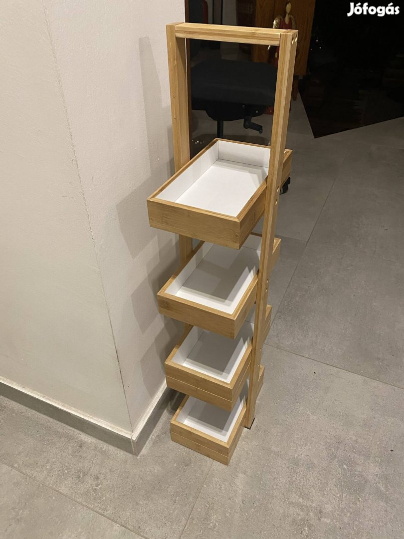 Eladó a képen látható, Mömaxban vásárolt keskeny, praktikus, tároló polc. Kiválóan alkalmas fürdőszobába vagy fűszer polcnak konyhába. Féláron kínálom