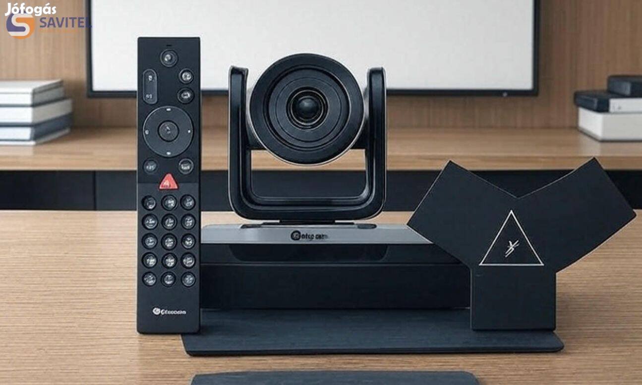 Komplett 4K videó felbontású videokonferencia csomag központi egységgel, kamerával, asztali mikrofonnal és távirányítóval.