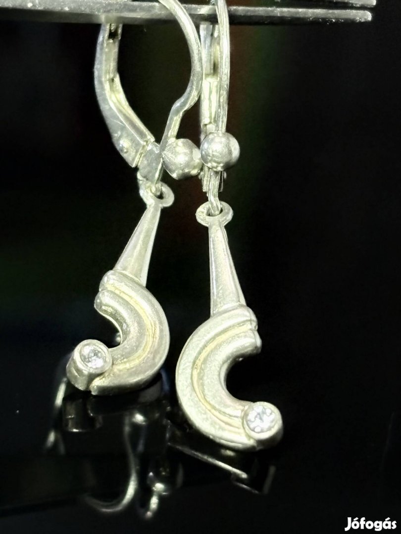 Eladó egy pompás, ragyogó csillogású, visszafogott, mégis mutatós, lógós ezüst fülbevaló pár