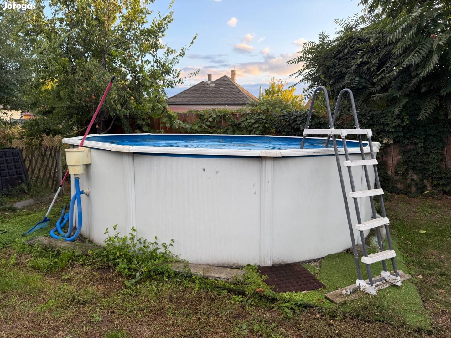 Eladó merevfalú medence. Átmérő 4,6 m, magasság 1,2 m. Jár hozzá 2 db (!) nagyteljesítményű Bestway homokszűrős vízforgató, az egyik teljesen új, sosem használt, a másik felújított. Jár hozzá skimmer, létra, csövek, toldók, alkatrészek,takarófólia, 14 db fagytest, a szűrőbe polysphere golyók, slagra csatlakoztatható medence porszívó. A medencében a fólia lassan cserére érett, tavaly nyáron még tartotta a vizet hibátlanul, de a napfény és a vízkő már elszínezte. Az ár az egészre vonatkozik, de darabonként is vihető.