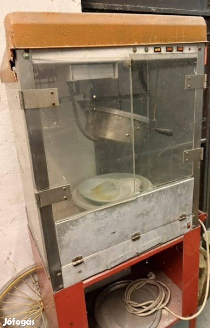 A képen látható állapotú pattogatottkukoricagép eladó . Régen nem volt használva , de működik rajta minden . Rendbe kell tenni .